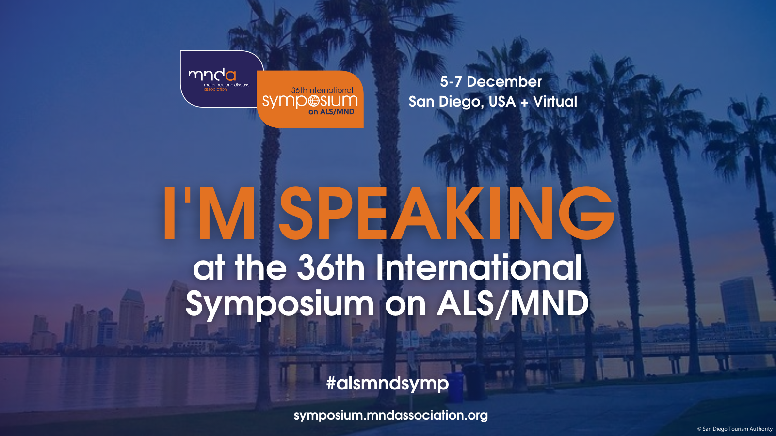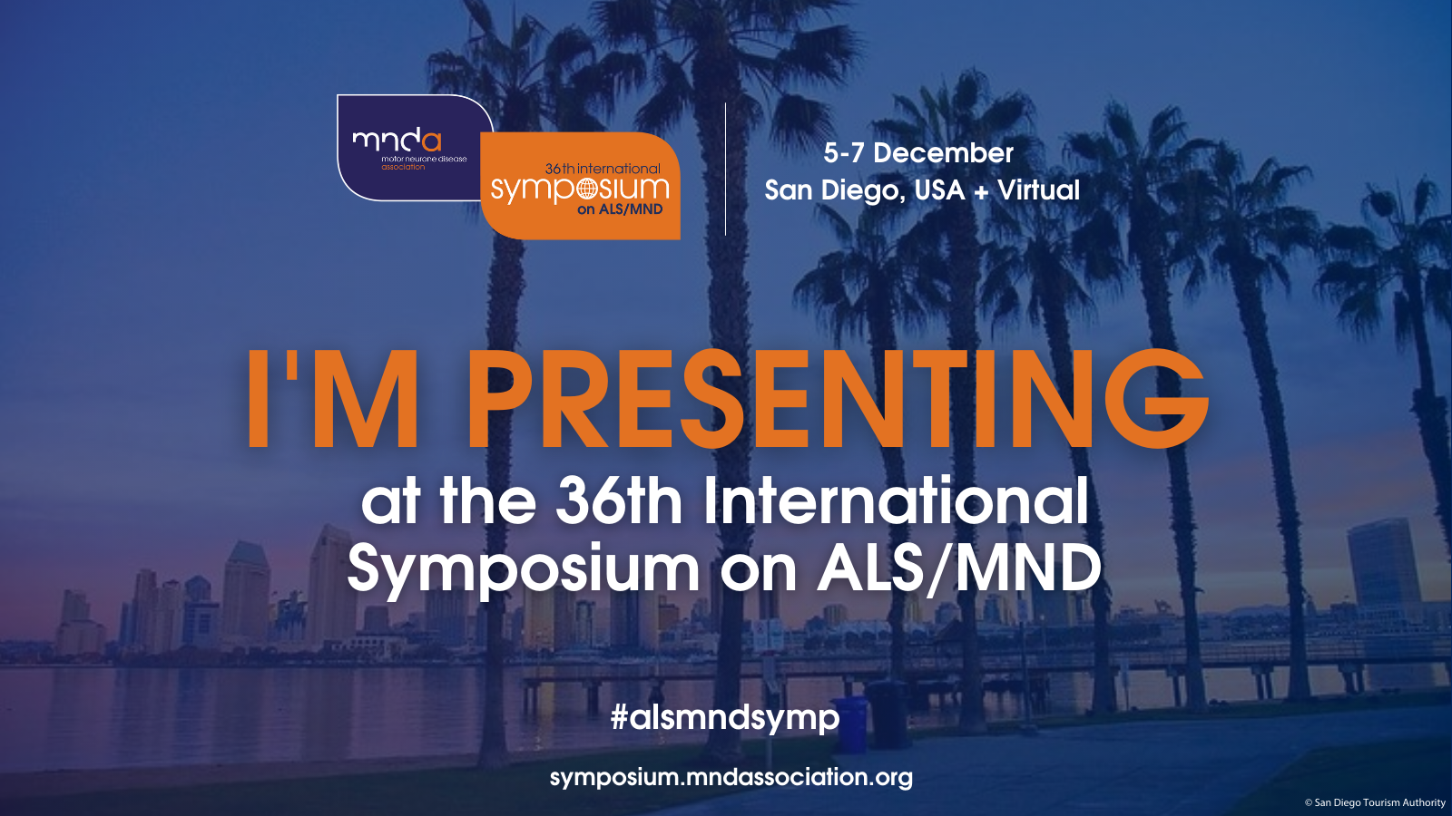 Are you looking to share that you are attending, presenting, speaking or chairing at the Symposium this year? Below we have a range of assets to use on social media to showcase your participation in the event! We can't wait to see your posts. Remember to use the hashtag #alsmndsymp on any posts!